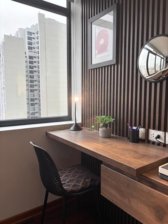Featuring a private entrance, this apartment comprises 1 living room, 1 separate bedroom and 1 bathroom with a shower and a hairdryer. The well-equipped kitchen features a refrigerator, kitchenware, a microwave and a toaster. The apartment provides a flat-screen TV with streaming services, a washing machine, a tea and coffee maker, a dining area as well as city views. The unit offers 2 beds.